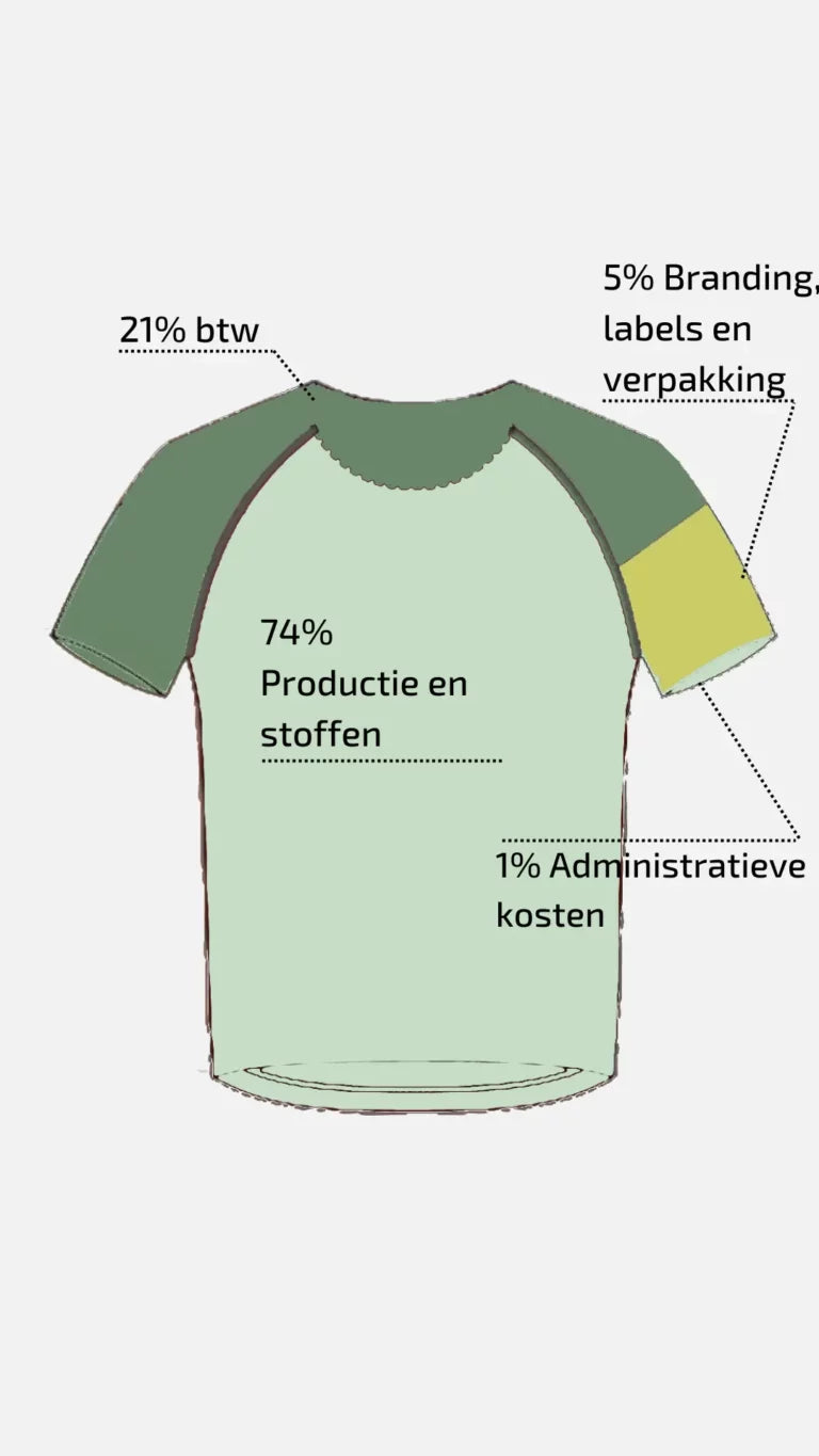 With these elements we arrive at the wholesale price. Our sales partners pay this price to put our clothing in their stores. Our margin on this wholesale price is less than 1%. Two more elements are important to arrive at the sales price. First of all, retailers also have to pay for keeping their stores open. So we negotiate a margin that our partners can take on our products. Finally, there is VAT. In Belgium we pay 21% VAT on clothing, which means that an additional 21% is added to our price. This money goes to the government.
